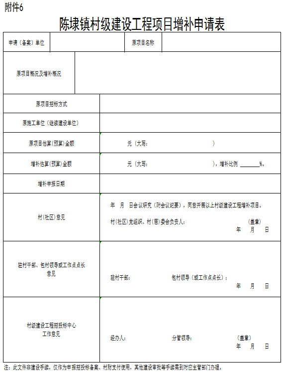 6.陳埭鎮(zhèn)村級建設工程項目增補申請表