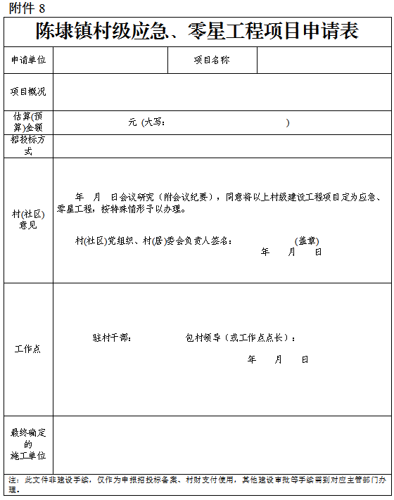 8.陳埭鎮(zhèn)村級應急、零星工程項目申請表