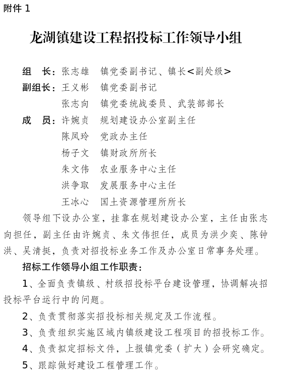 附件:1.龍湖鎮(zhèn)建設工程招投標工作領(lǐng)導小組