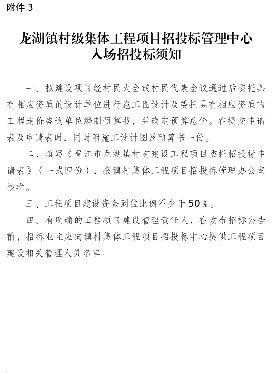 3.龍湖鎮(zhèn)村級集體工程項目招投標管理中心入場