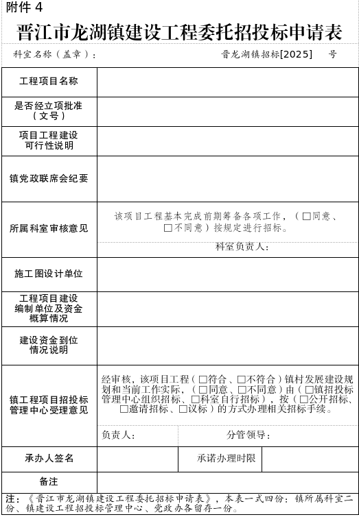 4.晉江市龍湖鎮(zhèn)建設工程委托招標申請表